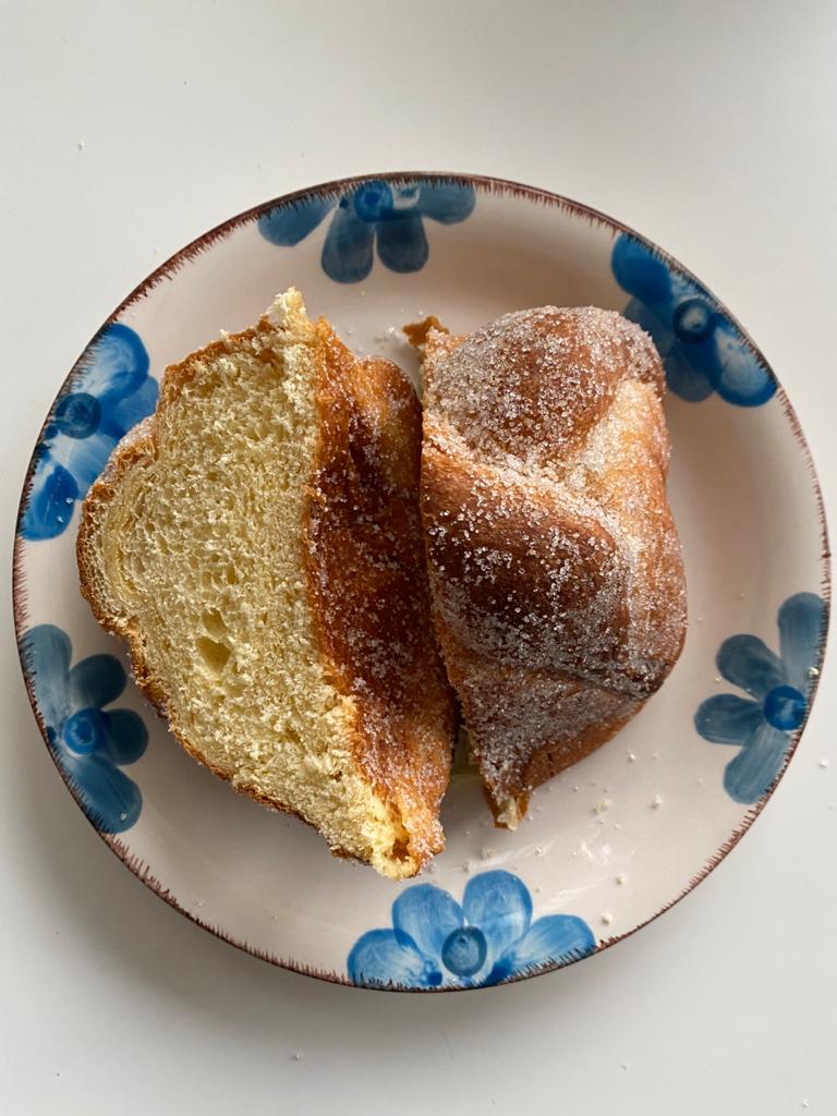 La Rifa es uno de mis lugares favoritos de la CDMX. Un pequeño expendio de chocolate mexicano en el que se pueden encontrar varias bebidas, postres y platillos en los que el cacao y el chocolate son los protagonistas. Por lo mismo, pensé que su pan de muerto tendría algo de chocolate o cacao; aún así, quería probar la propuesta de este lugar. ¿Y qué tal? Aunque no es un pan muy bonito (o no tiene una forma tradicional de pan de muerto), es un pan muy rico. Sus sabores están completamente bien balanceados y la miga es suave, lo que lo hace muy agradable al paladar. Quizá no será el mejor de este año, pero sí es una buena opción para comer un buen pan de muerto si te encuentras en la zona.