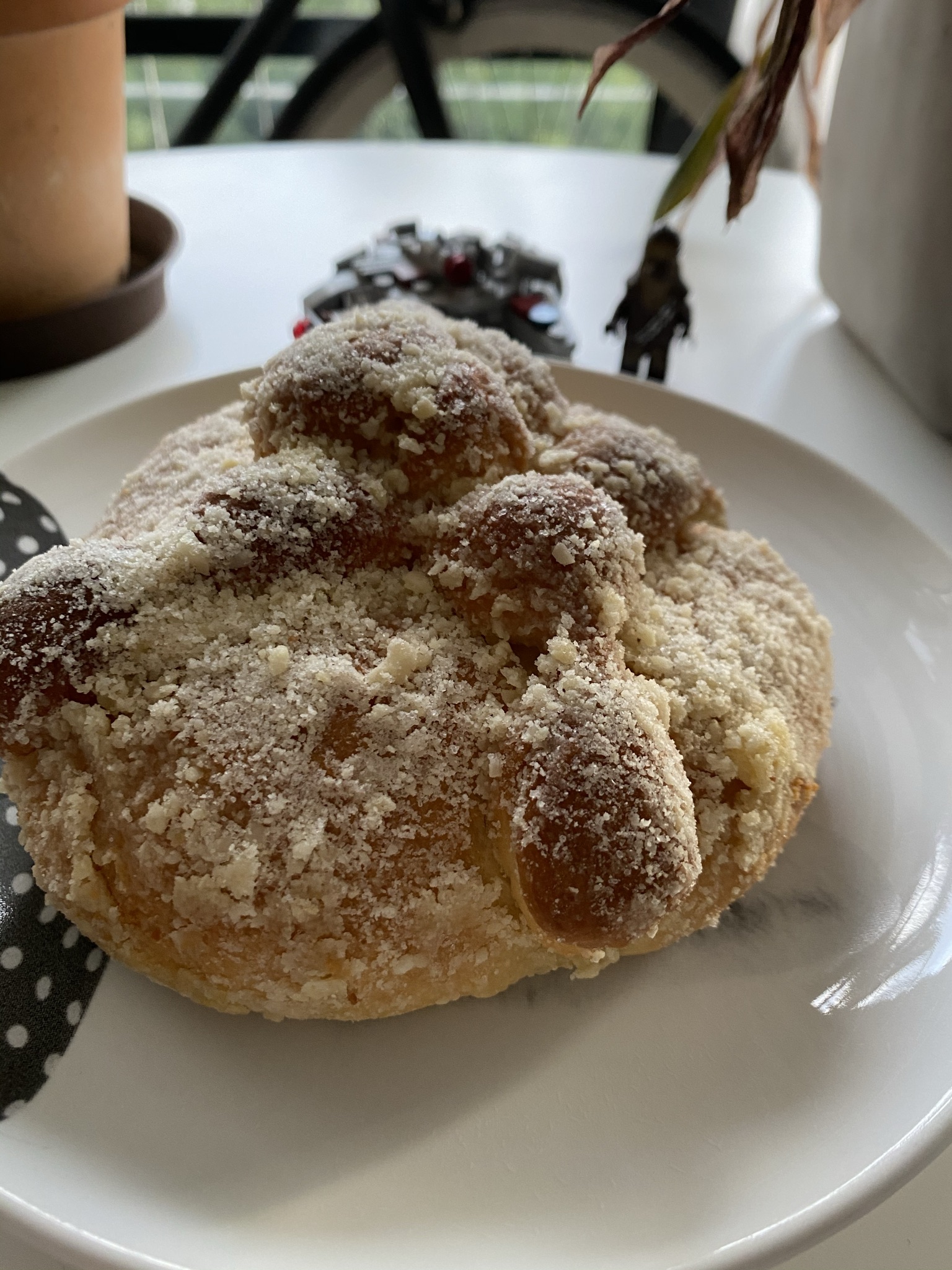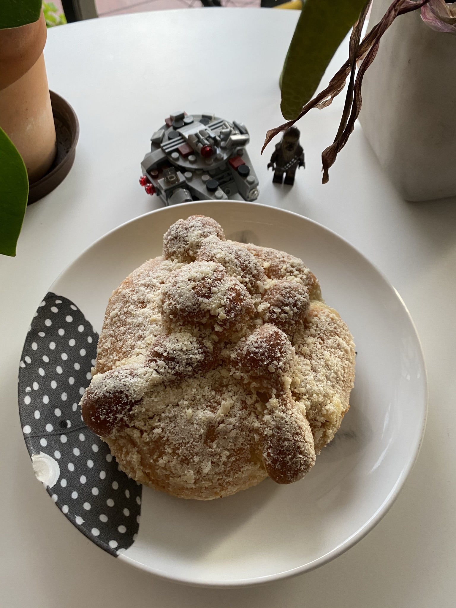 El Pan de Muerto de Mazapanes Toledo fue uno de los favoritos del año pasado. Y este año definitivamente no fue la excepción, pues es un pan realmente delicioso. Es un pan con sabor tradicional a azahar, y ligeros toques de mantequilla. Pero, a diferencia de los panes de muerto normales, este viene cubierto con polvo de almendra y relleno de una deliciosa pasta de almendra. Aquí entre nos., este Pan de Muerto es una gran opción para disfrutar de un sabor único y diferente.