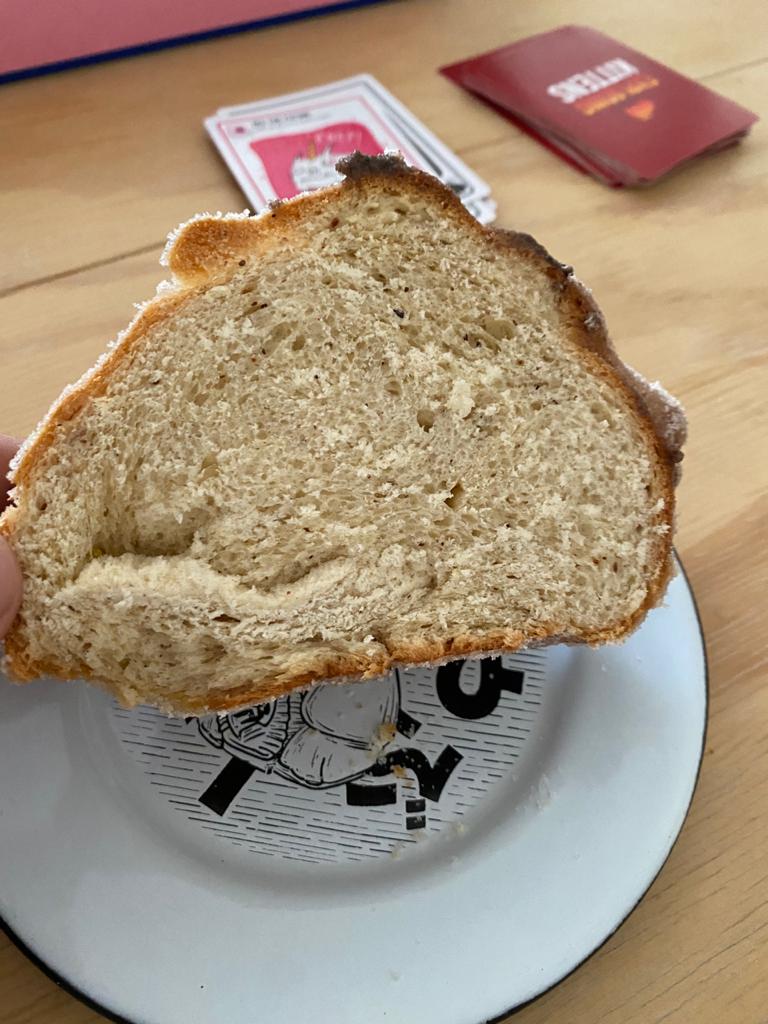 Mätre es una panadería más que surgió con la pandemia por COVID19. Una panadería en la que ofrecen pan elaborado de manera artesanal, con masa madre a la puerta de tu casa. Este año, tuve la oportunidad de probar su pan de muerto y debo decir que resultó ser un pan muy sabroso. Tiene un intenso sabor a naranja, sin ser empalagoso, y ligeros toques de mantequilla. Además, es muy suave y esponjoso.