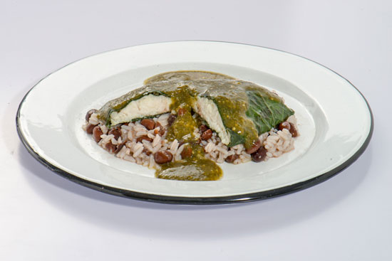 - Pescado Chispotiado – Huachinango empapelado en hoja santa bañado en salsa de tomate verde