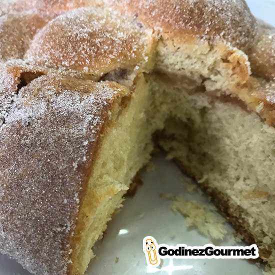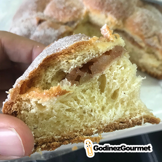 Por $120 pesos puedes disfrutar de un Pan de Muerto familiar (como para 6 personas), con todo lo necesario para deleitarte con el sabor de la temporada. Es un Pan de Muerto muy suave, y con una corteza un poco más firme; tiene un muy buen sabor a mantequilla y los toques justos de azahar y naranja. Su única ventaja (y en momentos desventaja) es que, además del pan, que en sí está delicioso, trae una muy pequeña capa de manzana. Esta capa de manzana ayuda a que el pan no sea tan empalagoso y se pueda disfrutar mejor.
