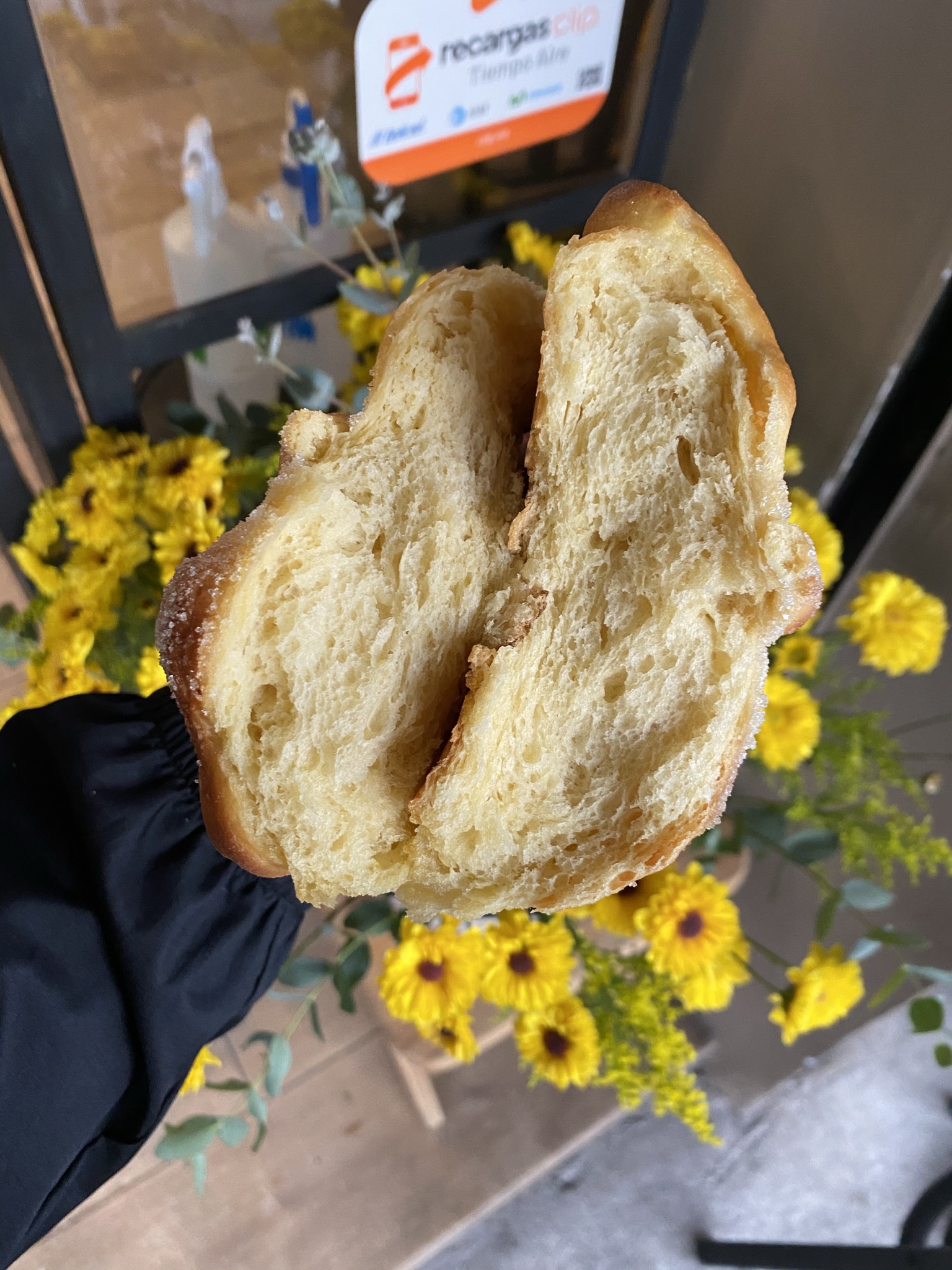 A unas cuantas calles del Centro de Coyoacán se encuentra El Beneficio de la Duda, un pequeño café en el que ofrecen una buena variedad de platillos y productos orgánicos y del comercio justo. Aprovechando un viaje a la zona, me di una vuelta por este lugar para probar su Pan de Muerto. Resultó ser un pan resultó ser un pan con sabores ligeros a naranja y mantequilla ero con una textura un poco extraña; lo sentí un tanto chicloso.