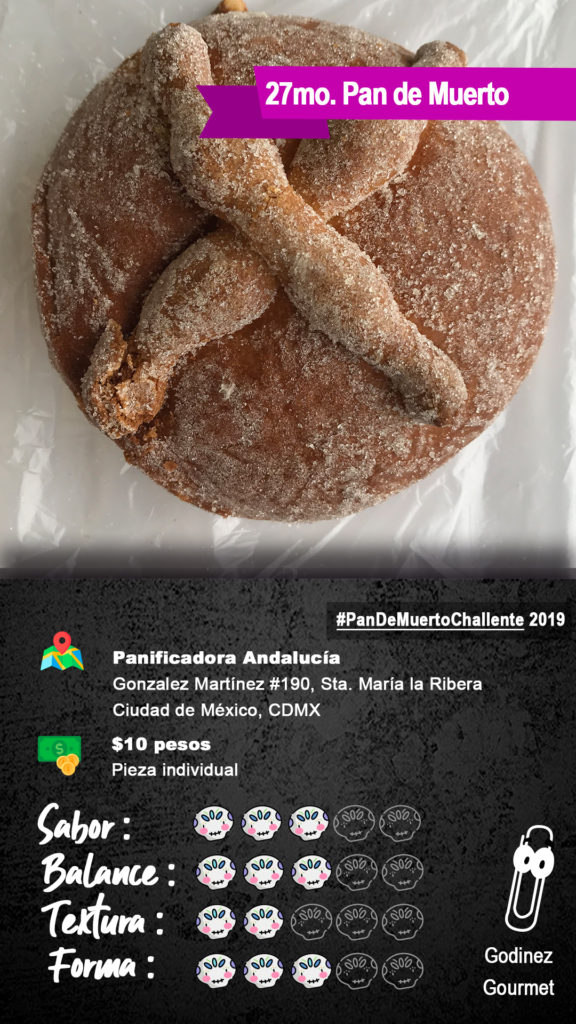 Bueno, pues el #PanDeMuertoChallenge llegó hasta la panificadora de Mi Marido Tiene Familia. ¿El resultado? La verdad es que es un muy buen pan, y muy barato. Y es que, por $10 pesos, ofrecen un pan muy suave por dentro y dorado por fuera; con muy ricas notas de mantequilla y azahar. Es uno de los mejores panes de panaderías de barrio que hemos probado hasta ahora.
