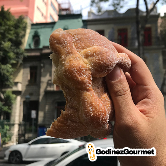 Rosetta es una de las panaderías más populares en la CDMX, por lo mismo, cuando llegamos a Panaderia Rosetta de la Colonia Juárez, a eso del mediodía, estaba atascada. Entramos y tratamos de pedir un Pan de Muerto para llevar, lo que fue un poco complicado. Una vez que conseguimos nuestro Pan de Muerto de $47 pesos, salimos a la calle de Havre y lo probamos mientras caminábamos a la siguiente parada.