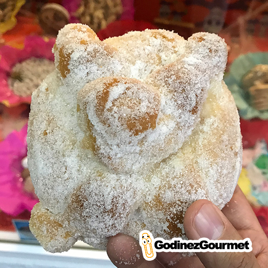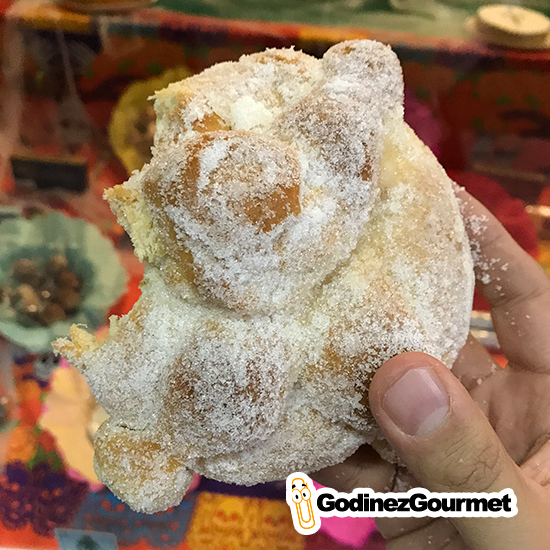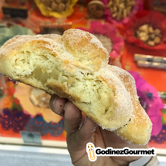 Resulta que en Mazapanes Toledo tienen tres tipos de Pan de Muerto, el tradicional, el de nuez (cubierto de nuez en vez de azúcar) y otro que no recuerdo de qué es. Eso sí, todos vienen rellenos de pasta de mazapán de almendra. Yo pedí el tradicional y quedé más que encantado, a pesar de que suelo estar en contra de los Pan de Muerto Rellenos.